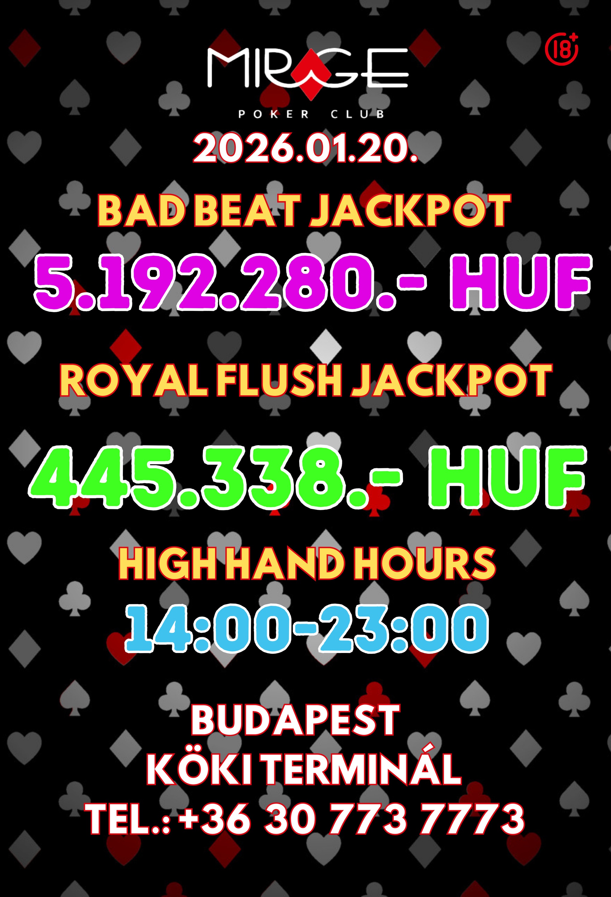 In our HERO room, at the cash game tables , Bad-beat and Royal-flush jackpot games all day long.Your seat is ready!