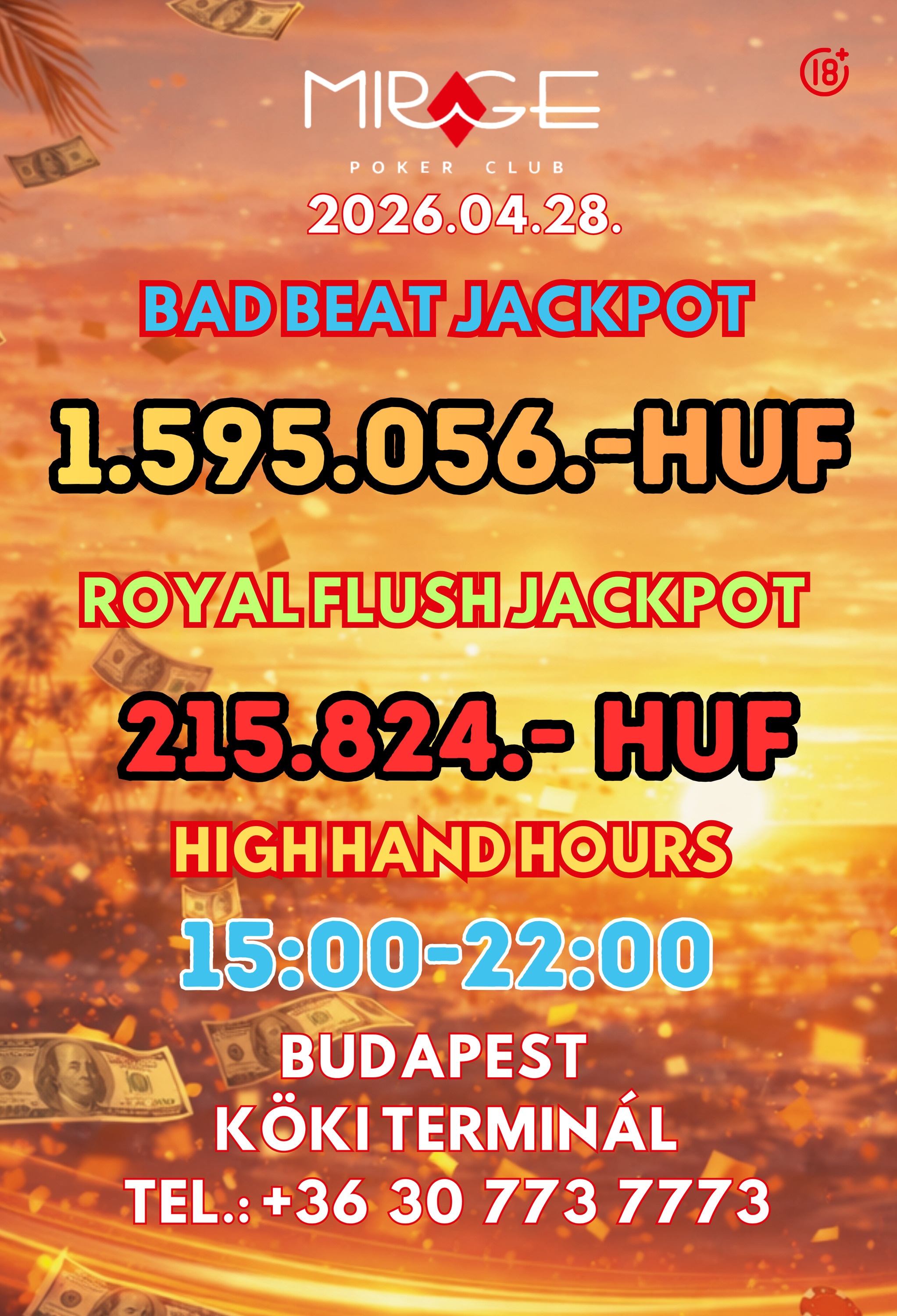 In our HERO room, at the cash game tables , Bad-beat and Royal-flush jackpot games all day long.Your seat is ready!