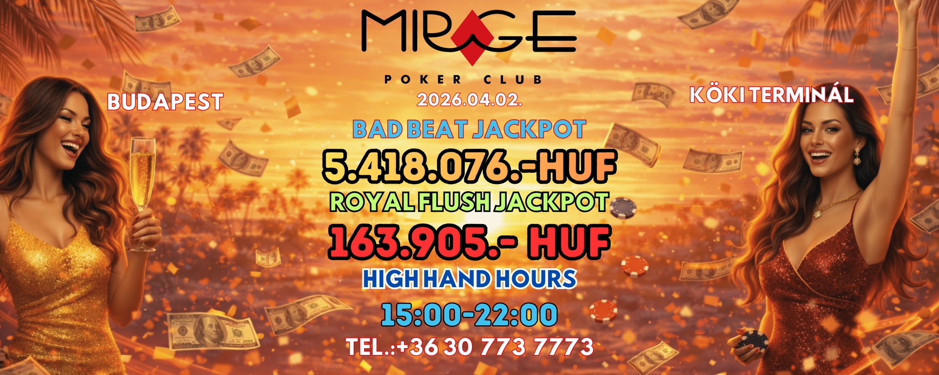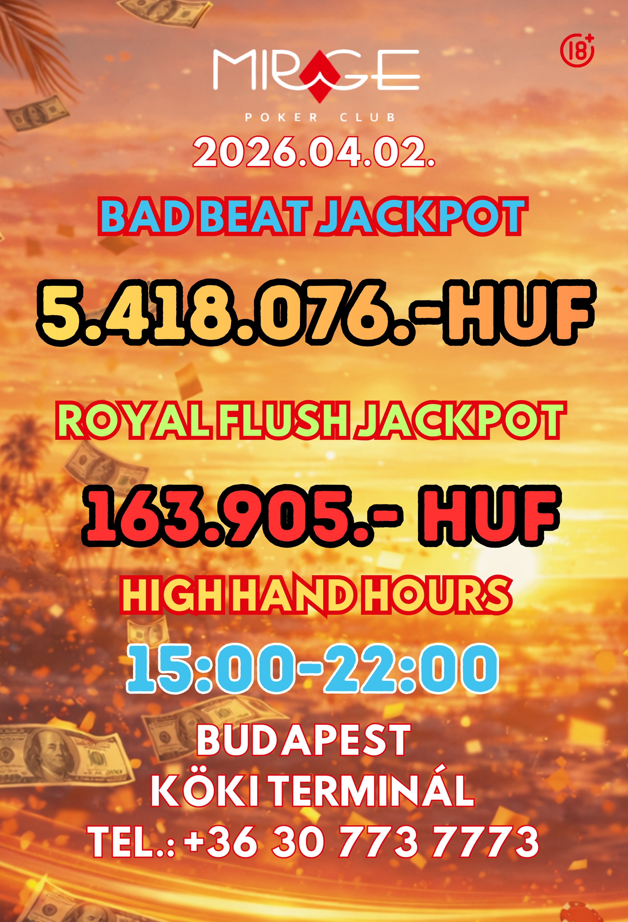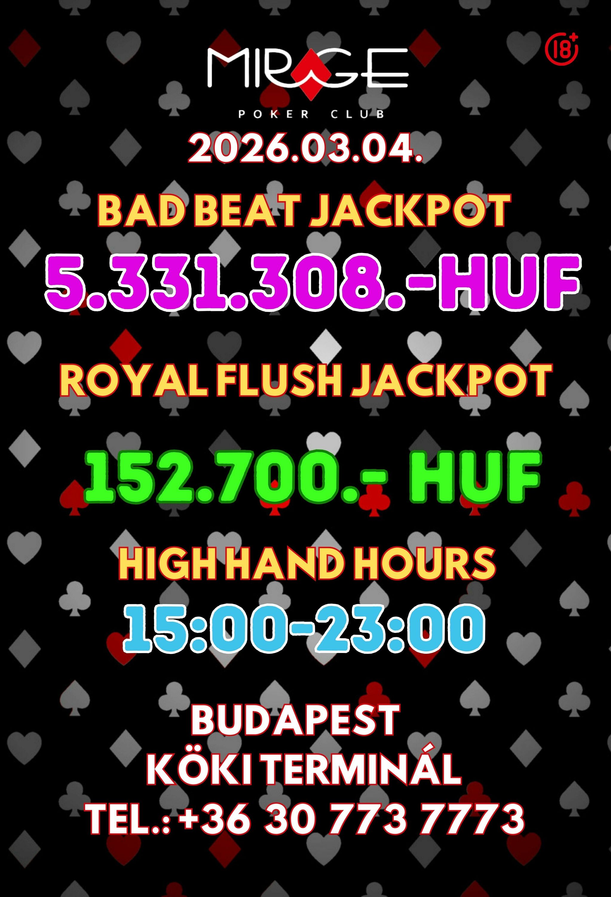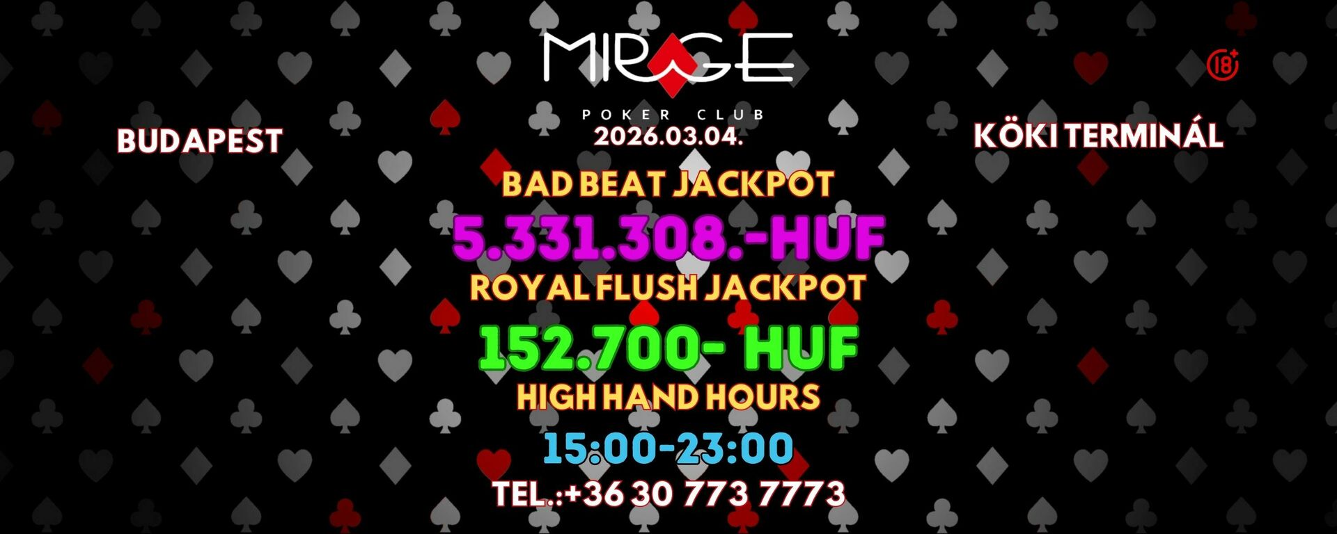 1000 négyzetméteren, két szinten, 3 teremben megnyitotta kapuit Budapesten, a XIX. kerületi KÖKI Bevásárlóközpontban a Mirage Poker Club.