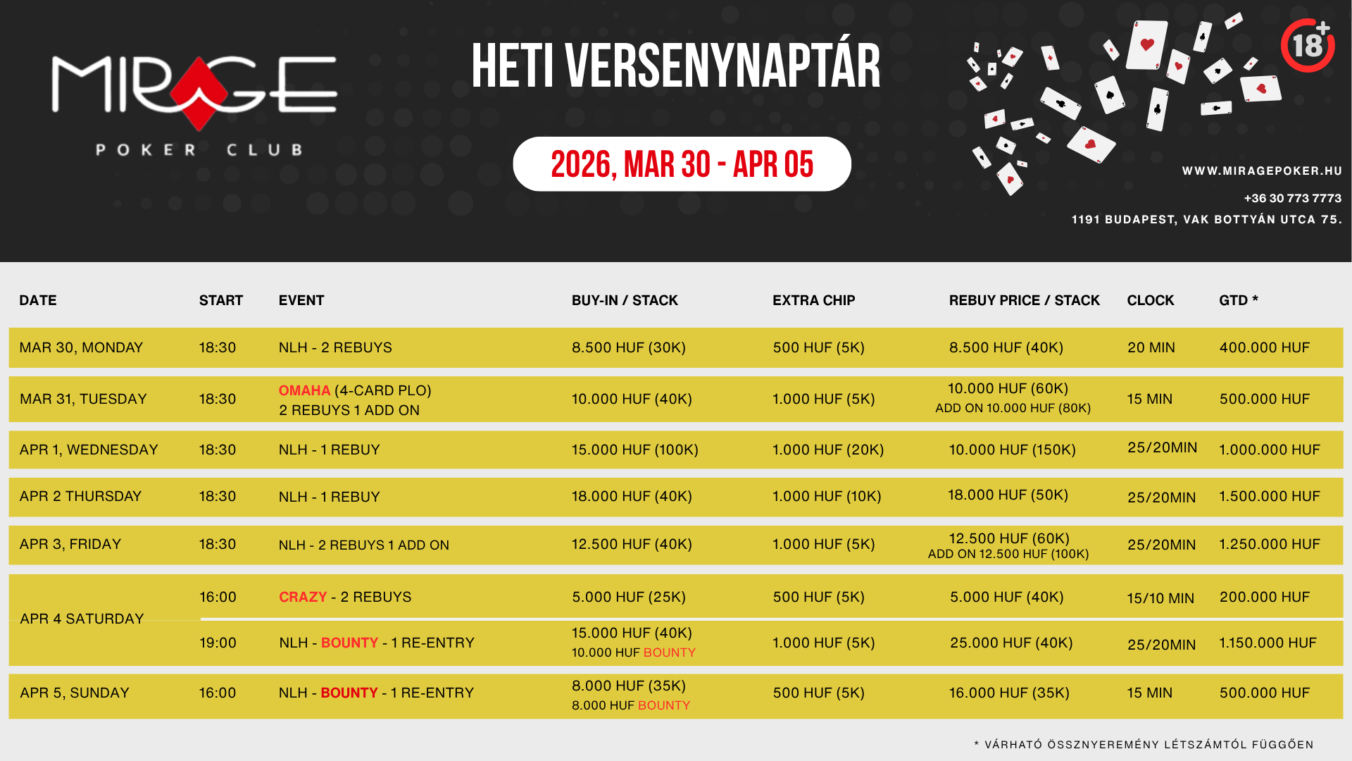 18 év alatti személy szerencsejátékban nem vehet részt.