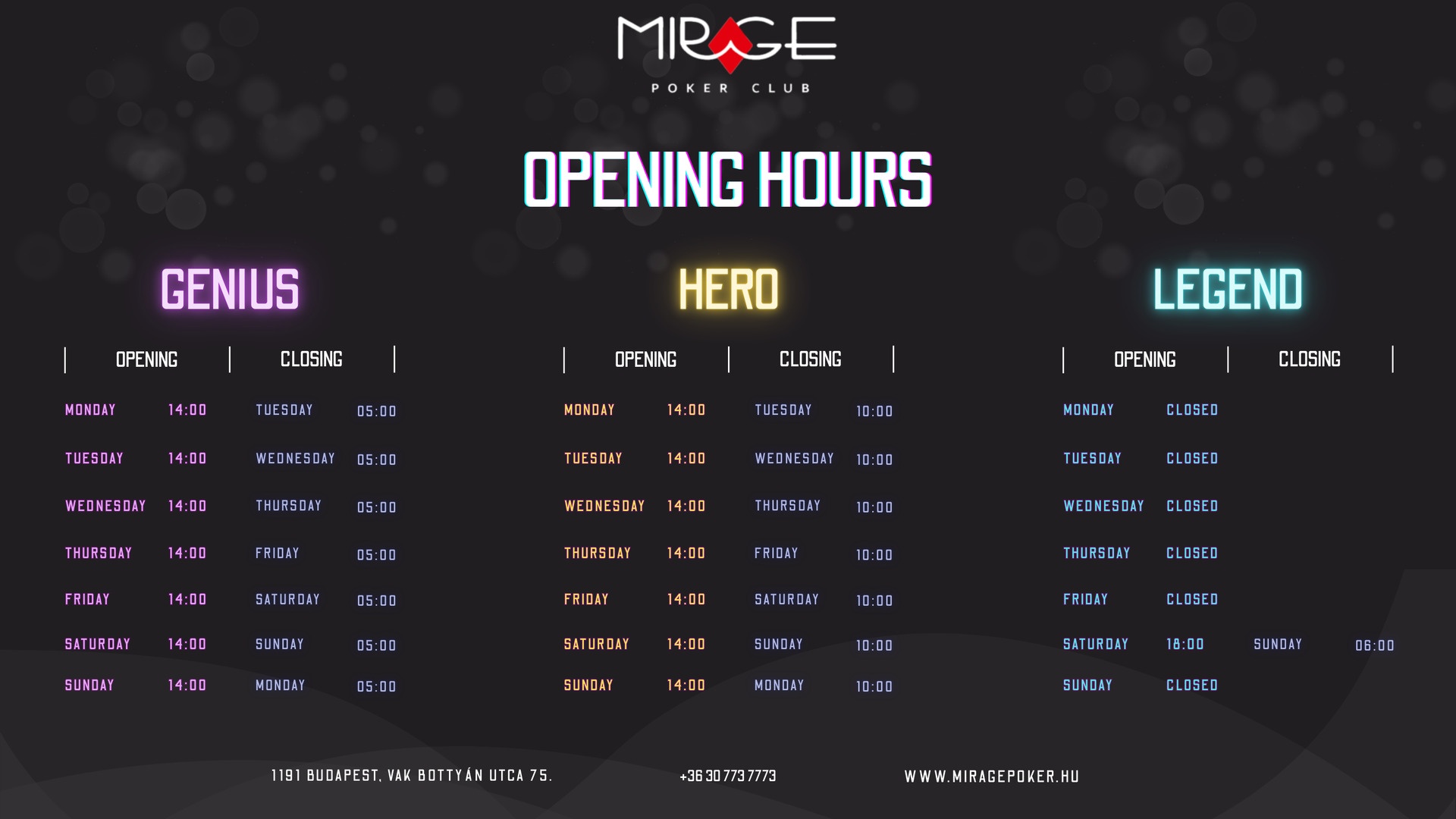 The Mirage Poker Club tournament series will start on 14.03.2025 at 16:00!
